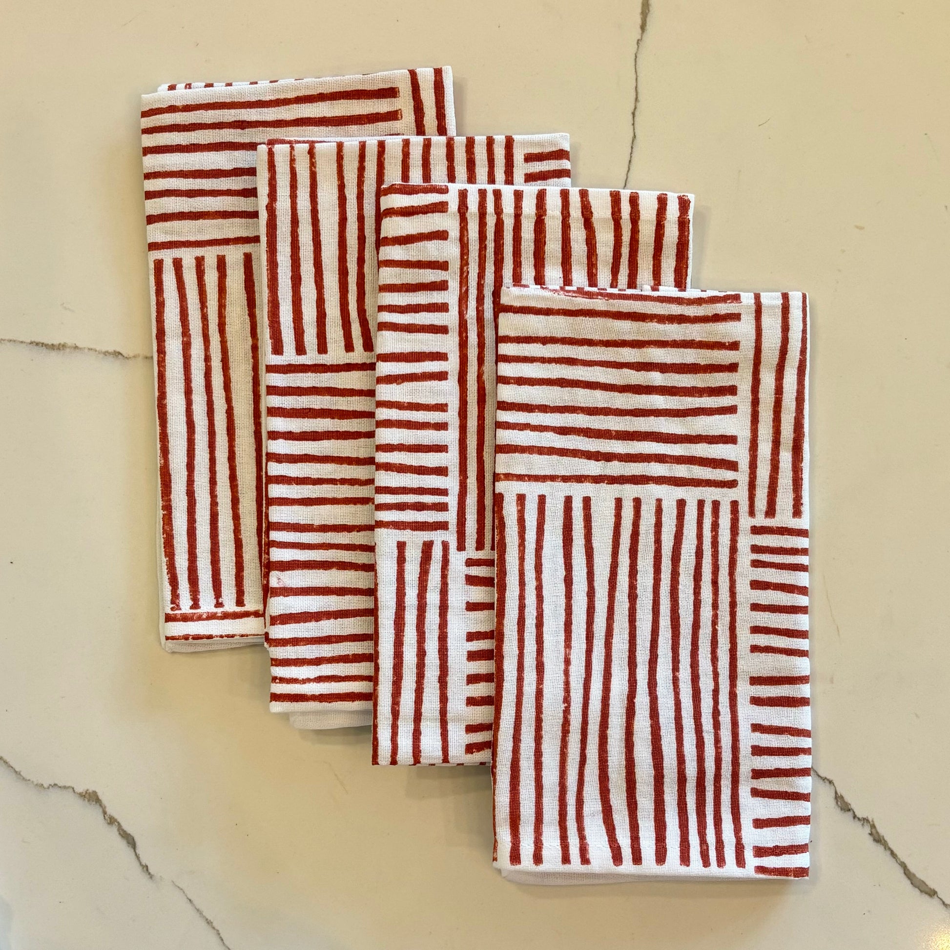 Dinner Napkins (set of 4) - Striped, Dark Coral