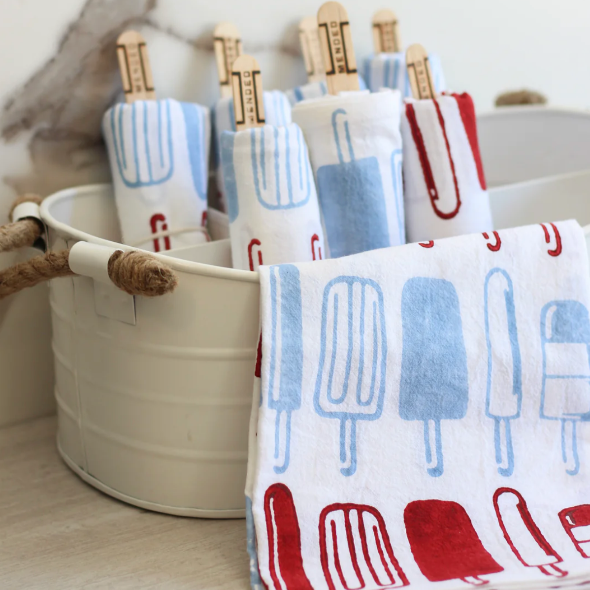 Hand-Printed Cotton Tea Towel – Popsicles (Uniform Blue & Red)