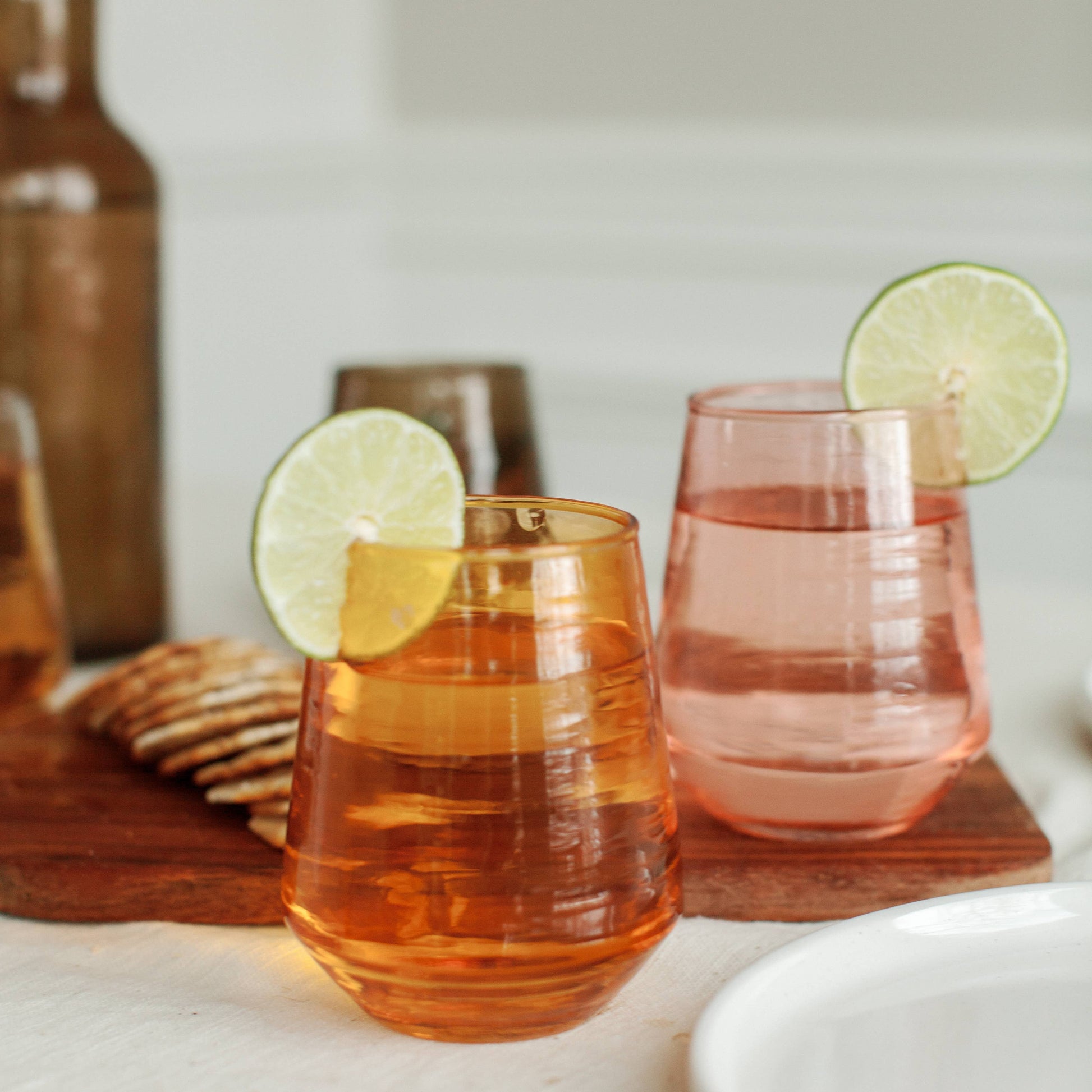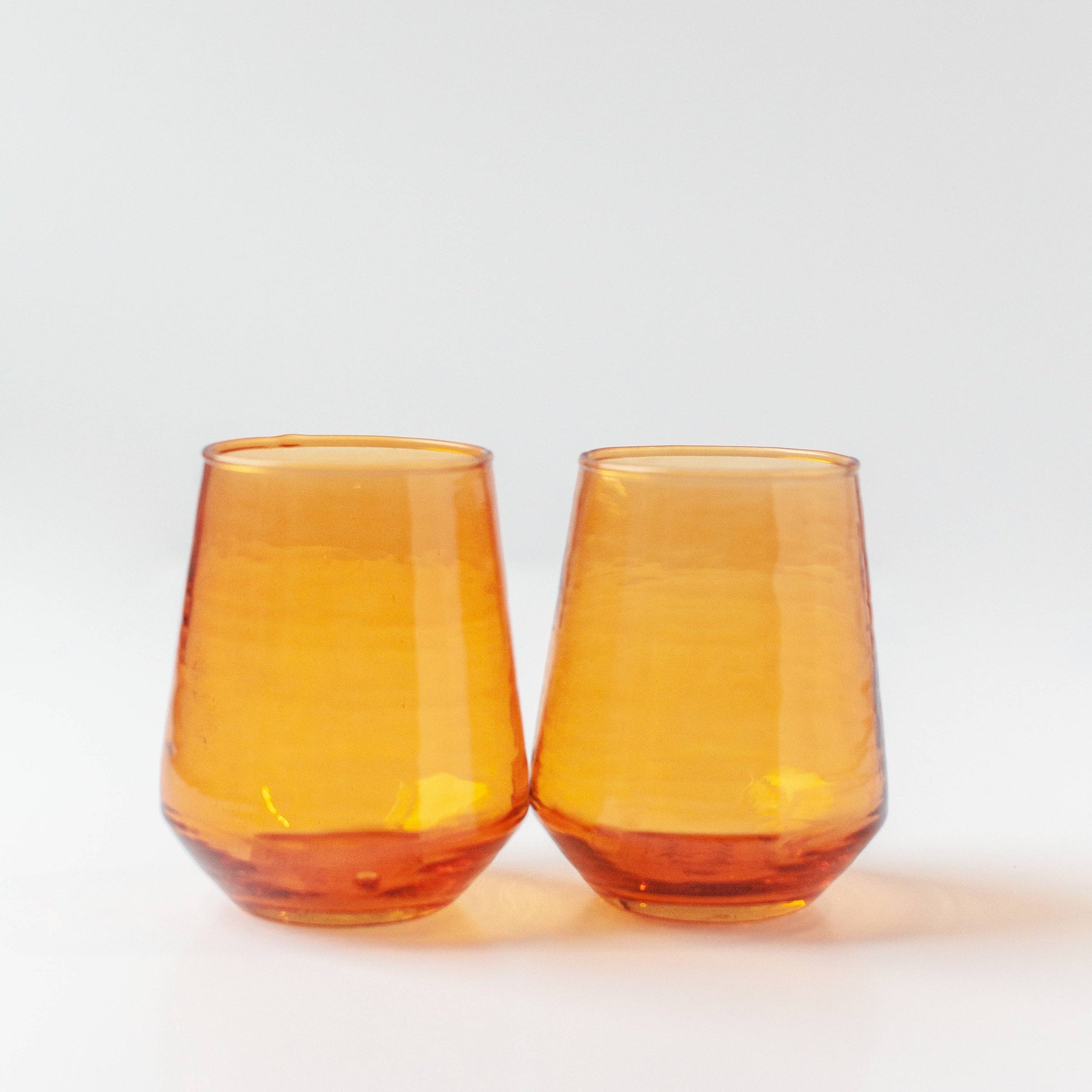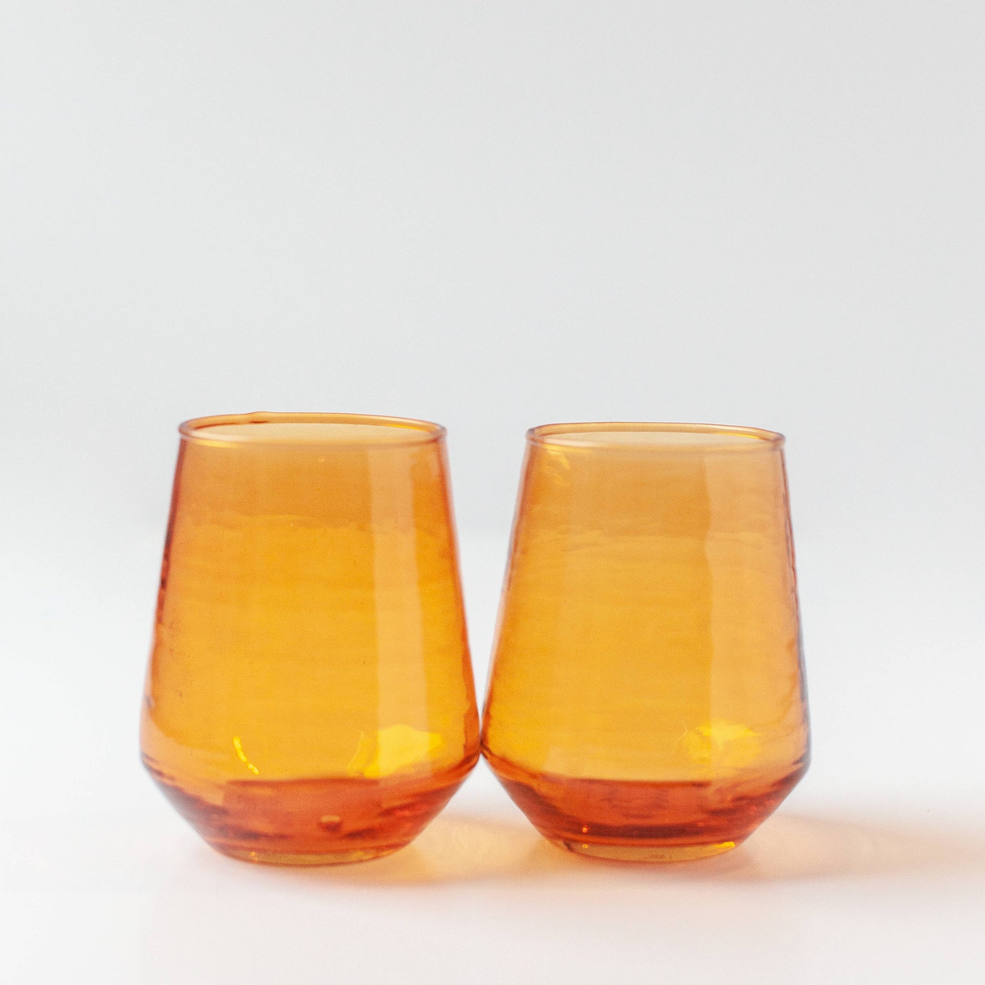Sip in style with these handblown hammered glass tumblers. Crafted with care at a woman-owned business, each is made from 100% recycled glass and meticulously hammered by hand for a truly unique finish. Master craftsmanship, beautiful texture, and organic lines make these perfect for everyday use or at your next dinner party.