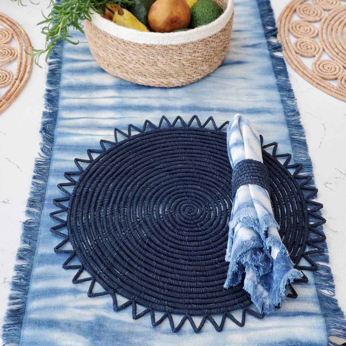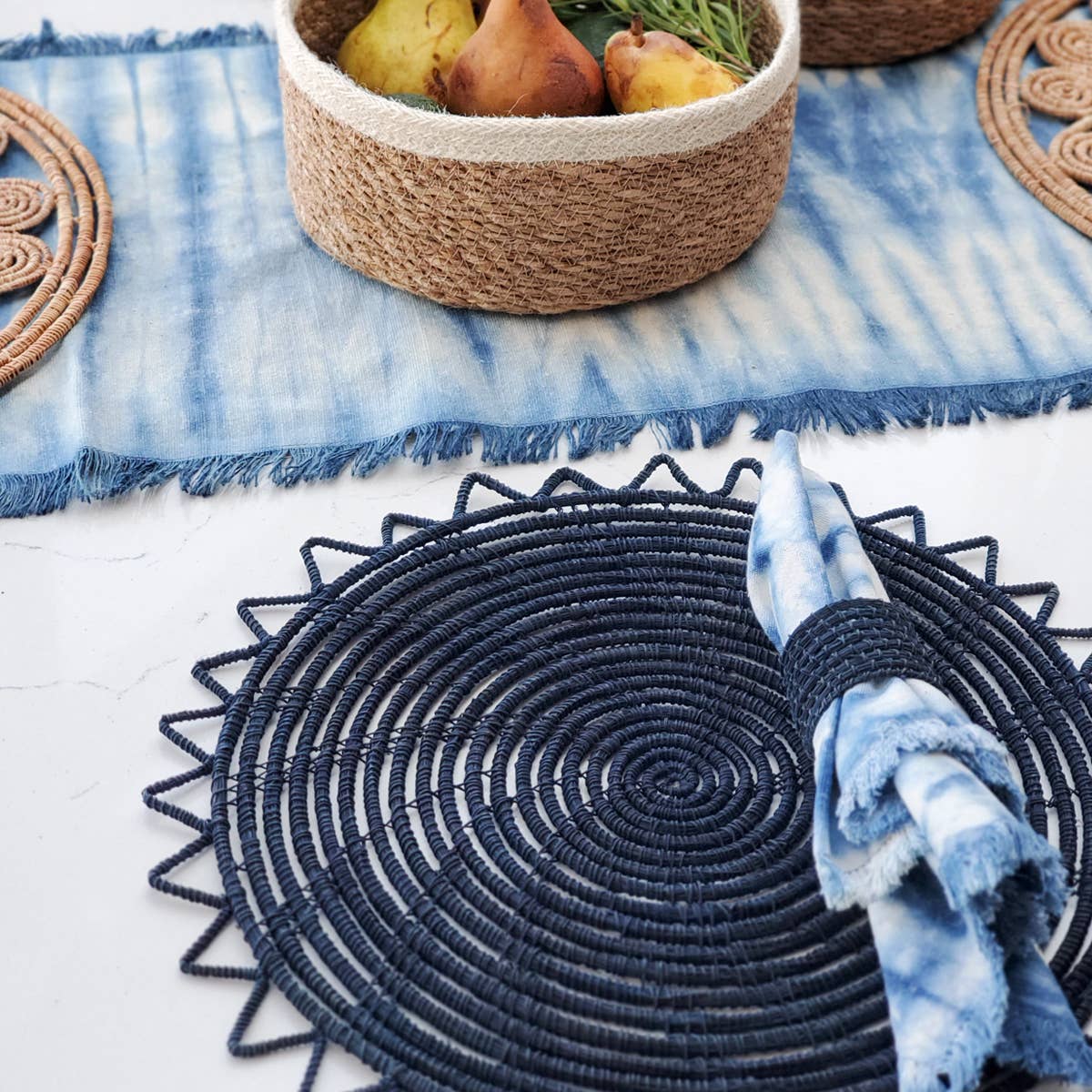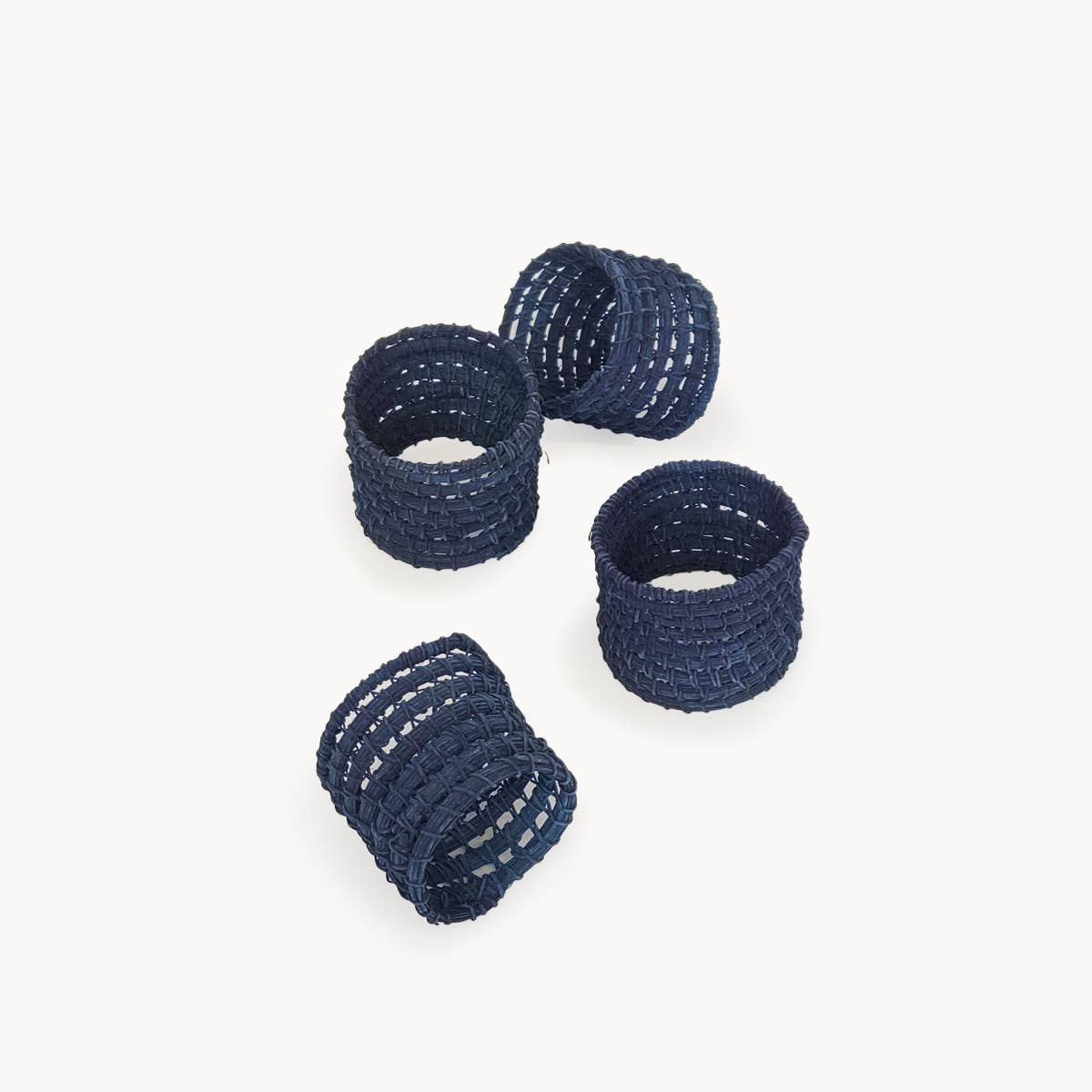 Handwoven Palm Fiber Napkin Ring - Indigo Blue (Set of 4)