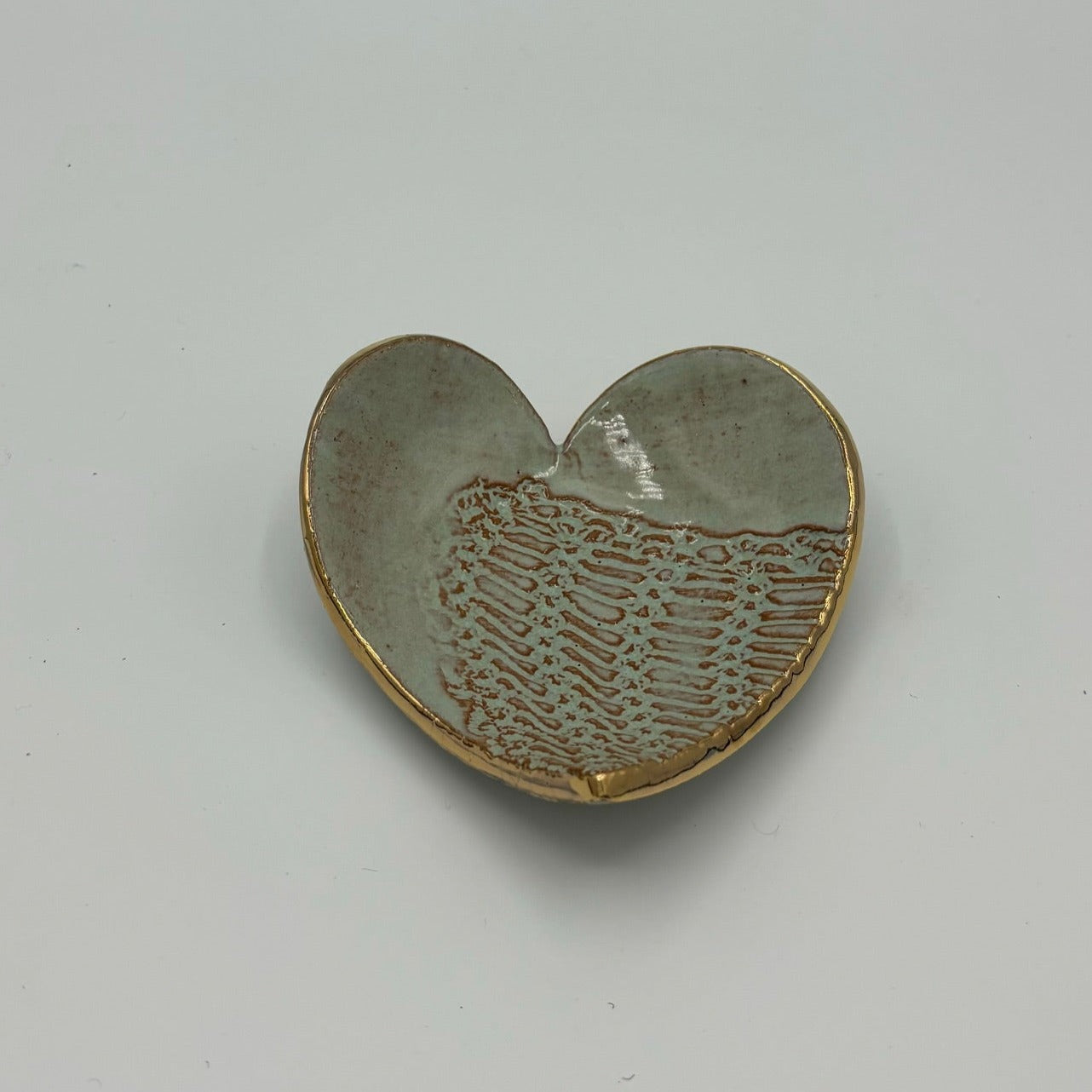 This beautiful handmade heart ring dish is perfect for holding all your trinkets and treasures. Each dish is hand-pressed with lace to create intricate and unique patterns. Whether you're seeking a sweet accent for your home, or simply want to give a meaningful and unique gift, this sweet dish is the perfect fit.