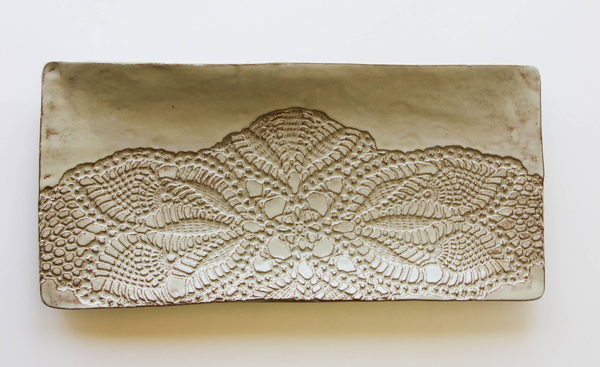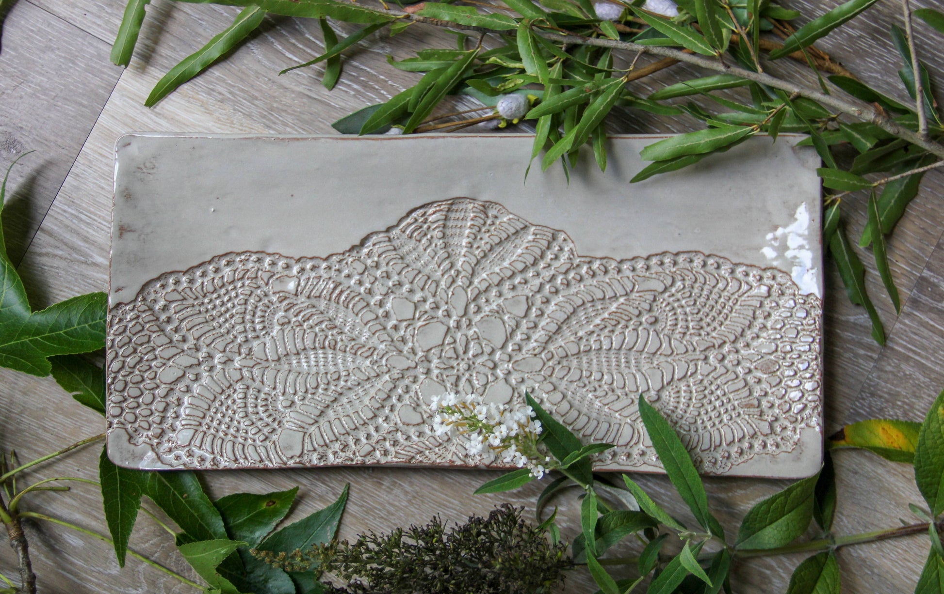 Add timeless elegance to your table with our hand-pressed lace-patterned platter, a piece as meaningful as it is beautiful. Each platter is carefully crafted by women rebuilding their lives after facing homelessness, abuse, or poverty, creating unique designs that tell a story of resilience and hope. A piece perfect for dinner parties or as a thoughtful gift.