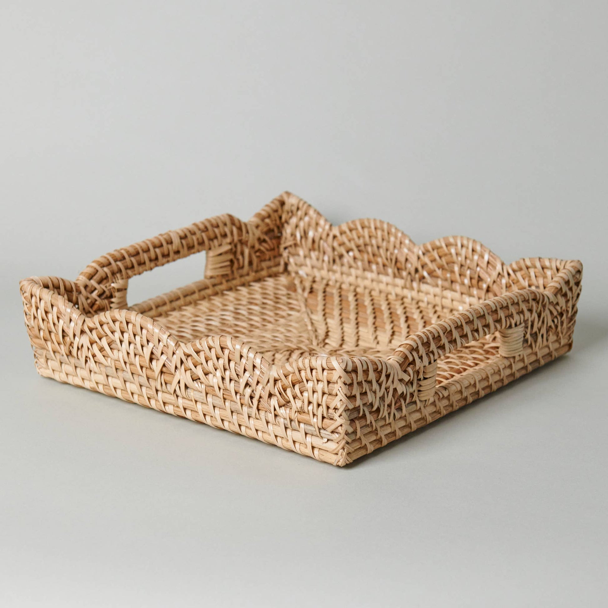 Crafted of sturdy rattan, a beautiful petal edge adds a delicate touch to the Mariposa Rattan Tray. It makes a statement atop a table with a minimalist floral arrangement, and also useful as a vanity tray on your dresser.