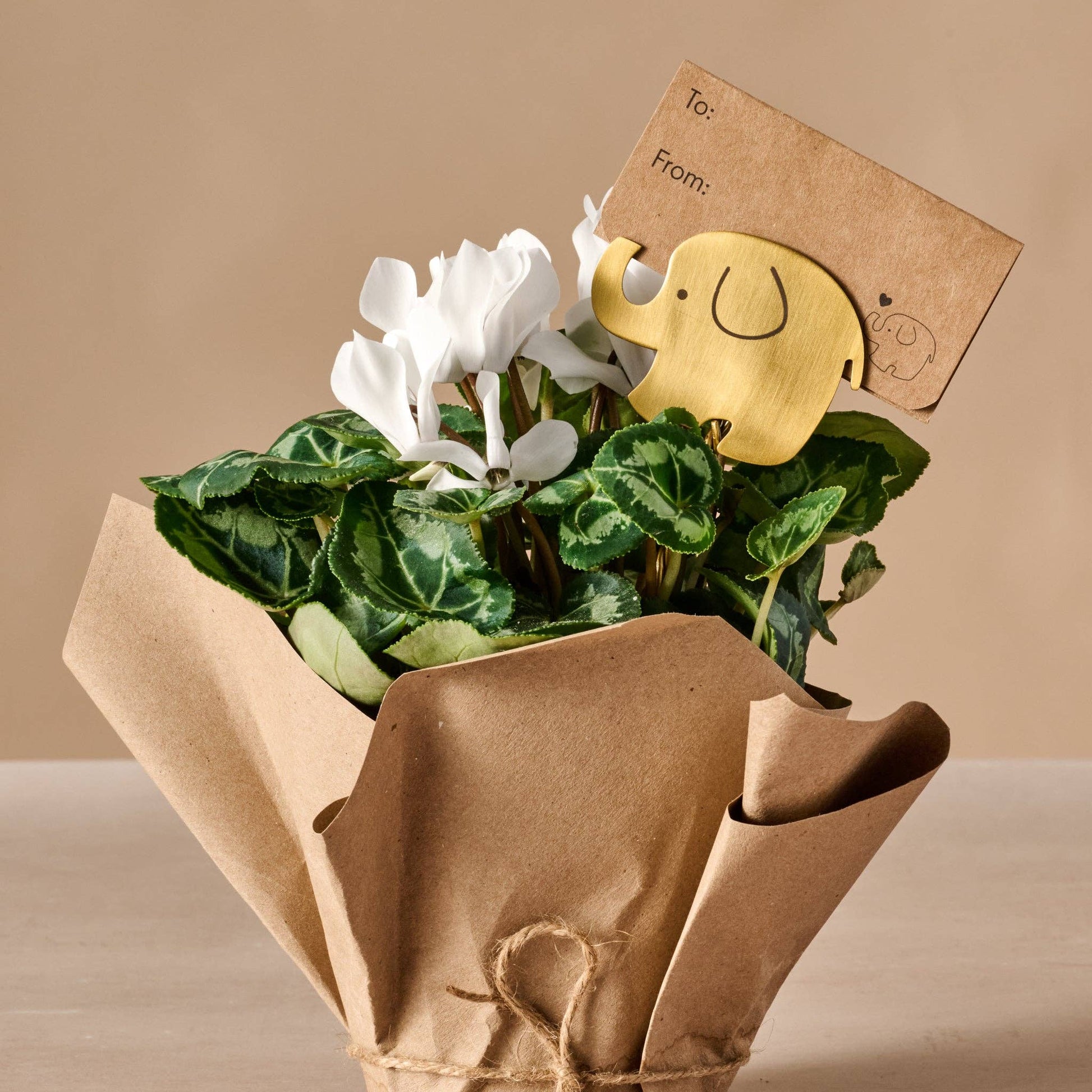 Bring a touch of inspiration and style to your flowerpot or garden with this whimsical elephant plant marker! The twisted rod design is a unique decorative element while the etched ear and eye details on the elephant plate add finely crafted charm.
