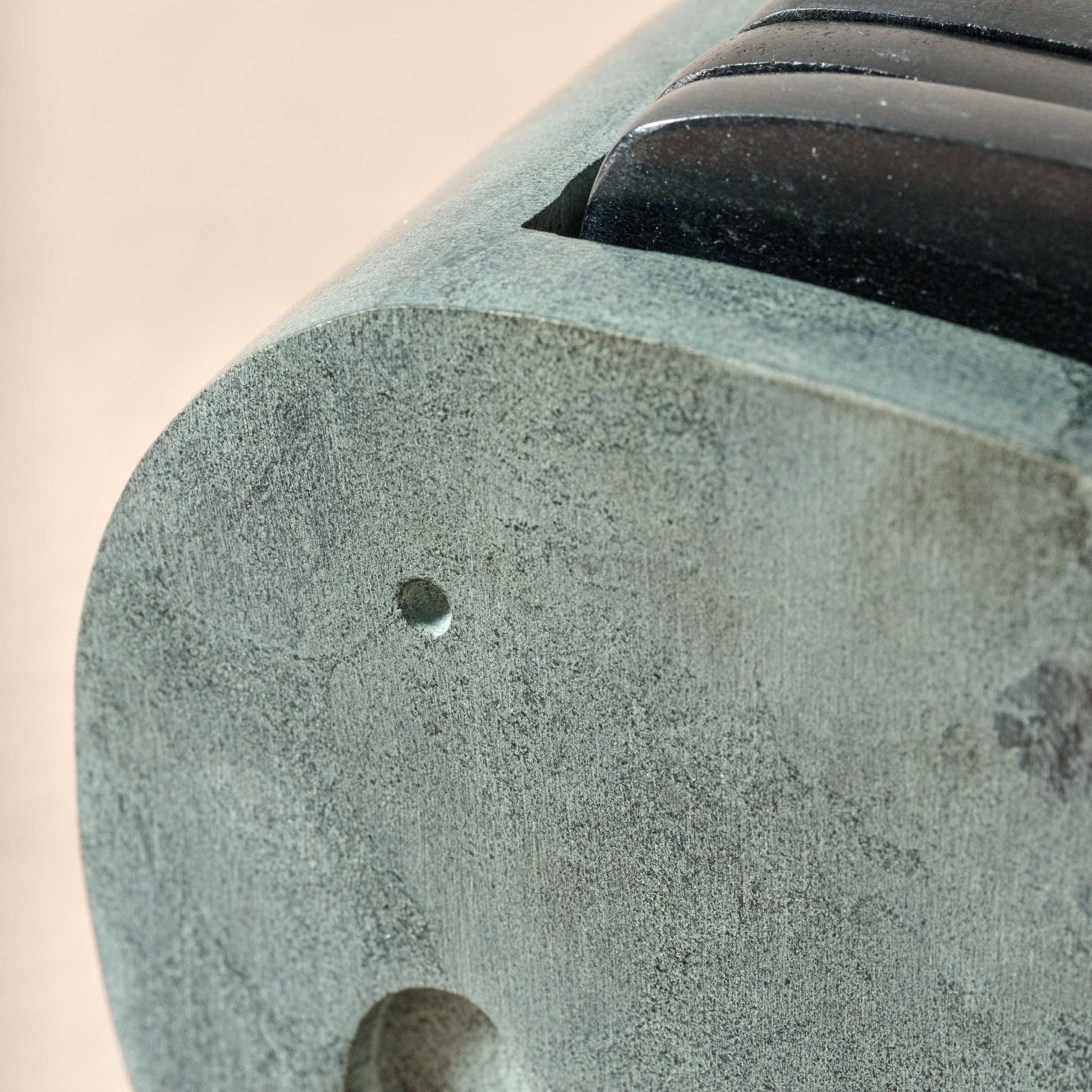 Protect your tabletops in style! This stone coaster set features a stylized elephant holder in gray and four black coasters. Coasters nest snugly in the elephant's back and act as a charming decor piece when not in use.