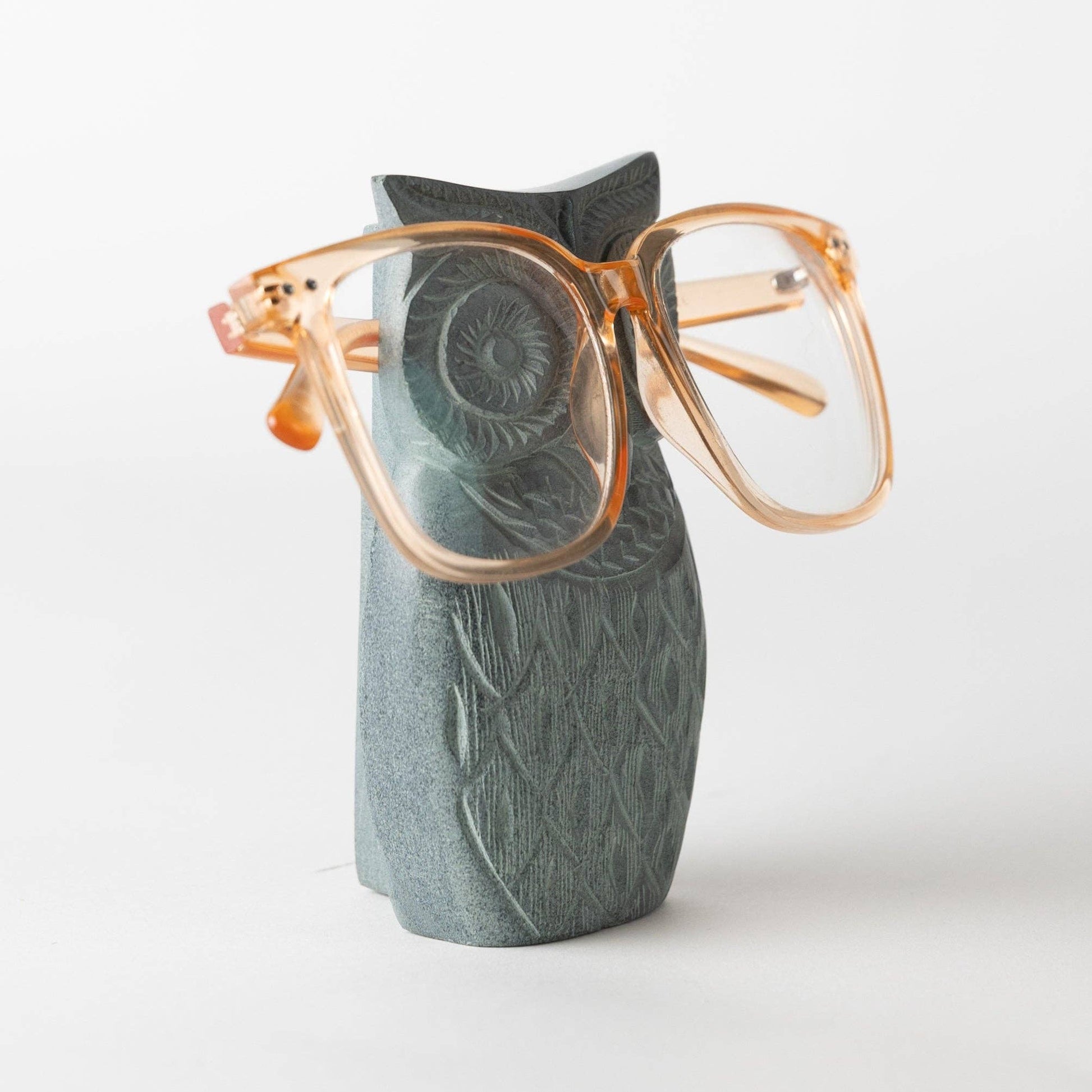Always losing your glasses? Put a stop to the search with the whimsical Owl Soapstone Eyeglass Holder, which is intricately handcarved to look like a wise owl. Simply place your glasses on the owl's beak to keep track of them.